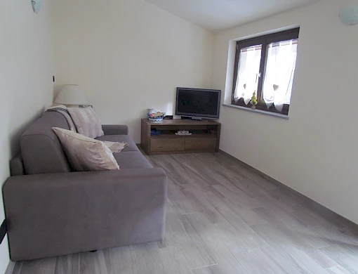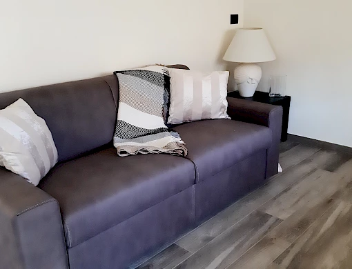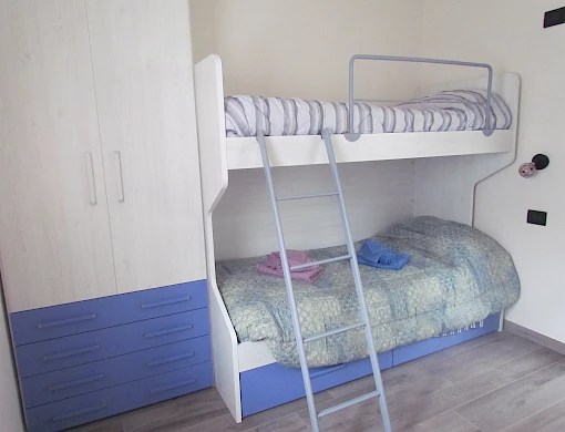 Composto da una cucina, camera matrimoniale, cameretta con letto a castello e un soggiorno con Tv e divano letto (totale 6 posti) è la soluzione ideale per chi vuole tranquillità.